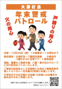 歳末防犯・防火パトロ-ルを実施いたします、暮れのお寒い中ではありますが皆様のご参加お待ちいたしております。