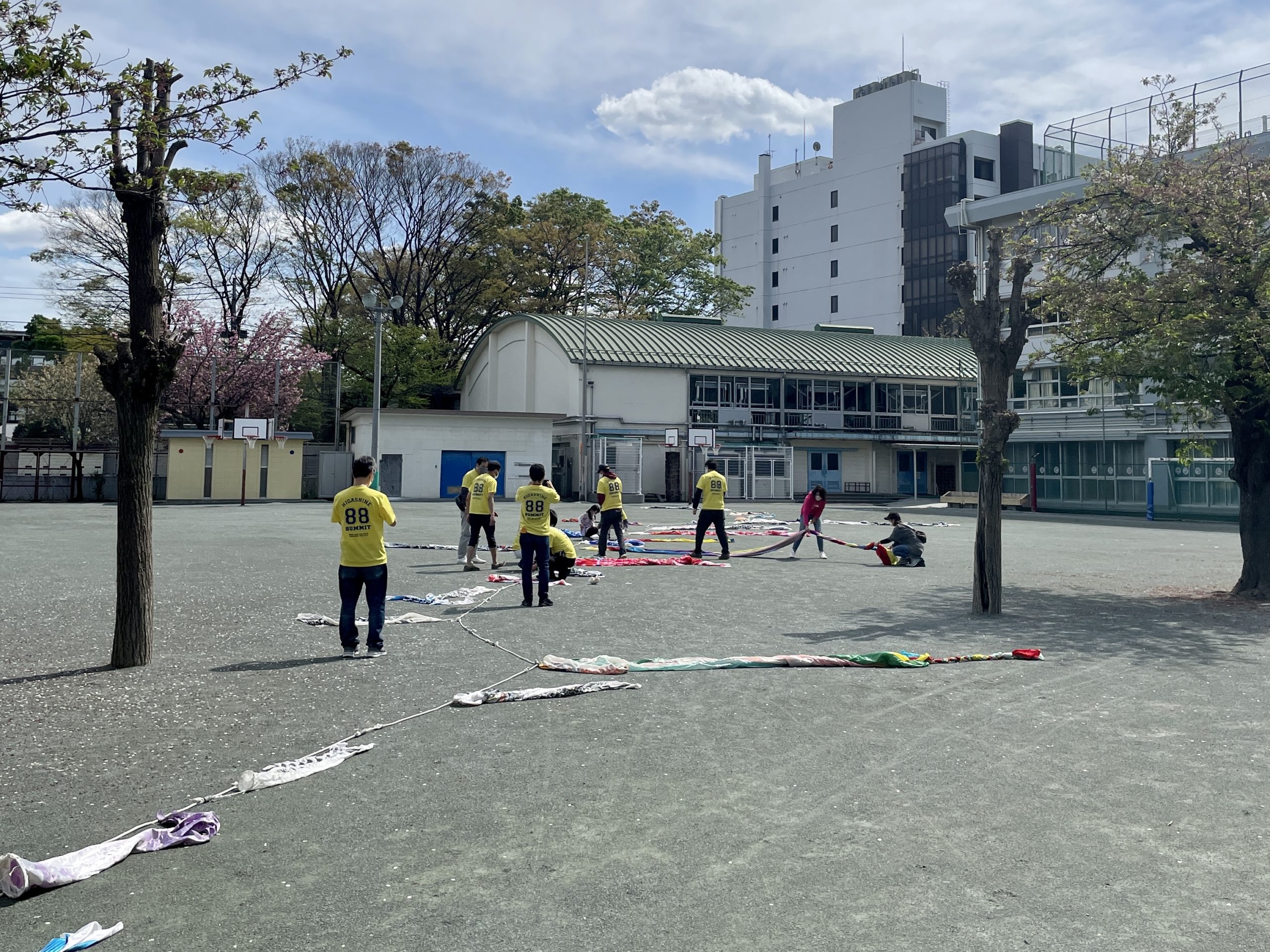 4月16日(土)東根小学校で「鯉のぼり掲揚」が校庭で行われ、大小様々な鯉のぼりが大空へ舞い上がりました。